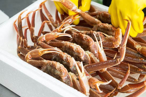 대게를 들었을 때 다리가 활발하게 움직이는 것이 신선한 것입니다.