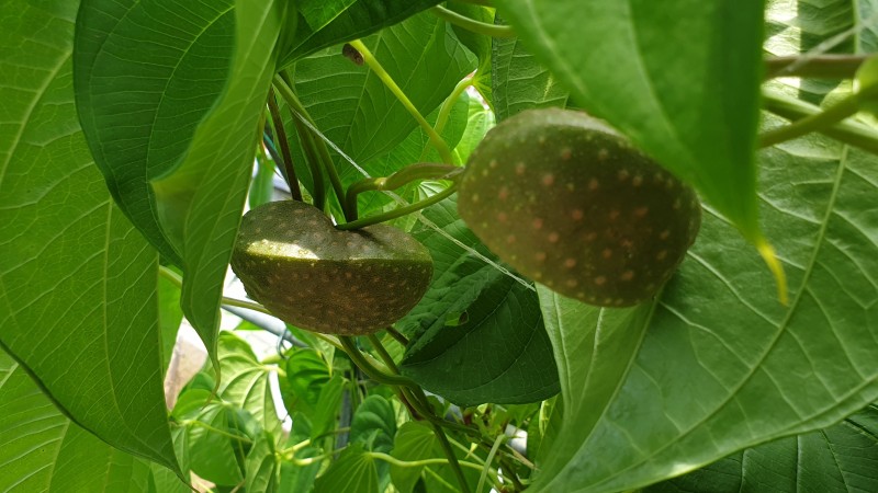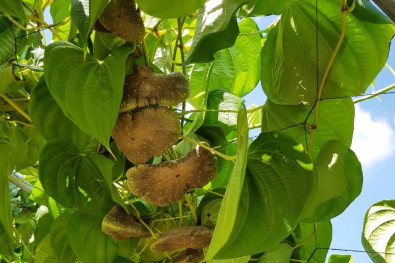 열매마라고도 불리는 하늘마는 땅속에서 자라는 일반 마와 다르게 줄기에 주렁주렁 달려 있습니다.