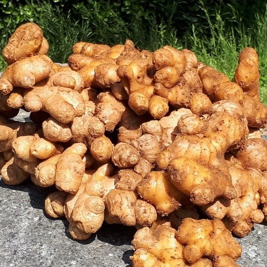 생강 껍질이 얇으면서 황토색을 띄는 것이 좋은 생강입니다.
